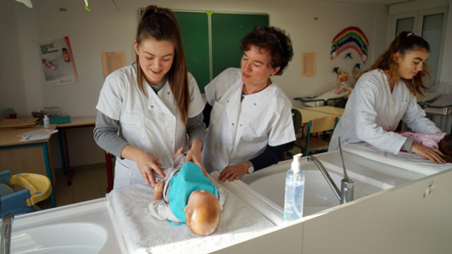 Nous avons une salle de travaux pratiques accessibles aux personnes en situation de handicap dédiée à la Petite Enfance avec tables à langer, baignoires, lits, transats,etc…